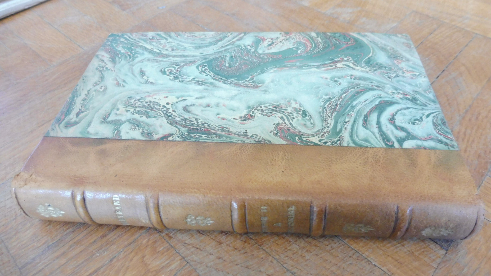 Demi cuir à 5 nerfs. Dos, coiffe et mors corrects, menues épidermures. Plats correctes. Tranches passées. Intérieur assez frais.