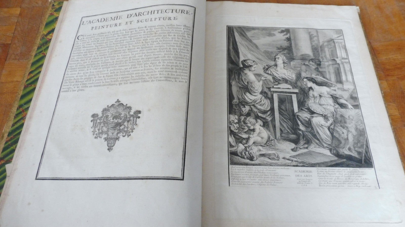 Recueil peu courant sur l'allégorie des sciences et des arts, en référence à la galerie d'Apollon de Versailles et au symbolisme royal.