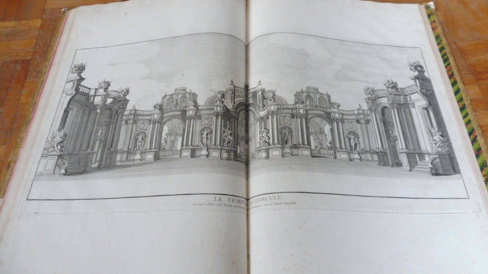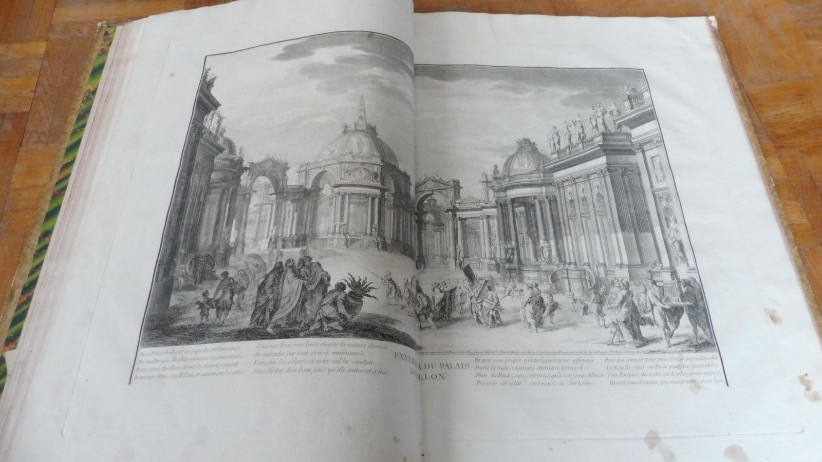 2 ff. de titre et plan, 1 f. dédicace, 5pp. de texte, 10 planches gravées par François, Pariset fils, J. Durand d'après Eisen, Bovet et Bernard. 2 planches ajoutées in fine (1 gravure au trait d'une vue extérieur d'un temple (pl. simple) et 1 eau forte d'une audience donnée par le roi à l'ambassadeur de Turquie, gravée par Poilly d'après Cochon, datée de 1774 (pl. double).