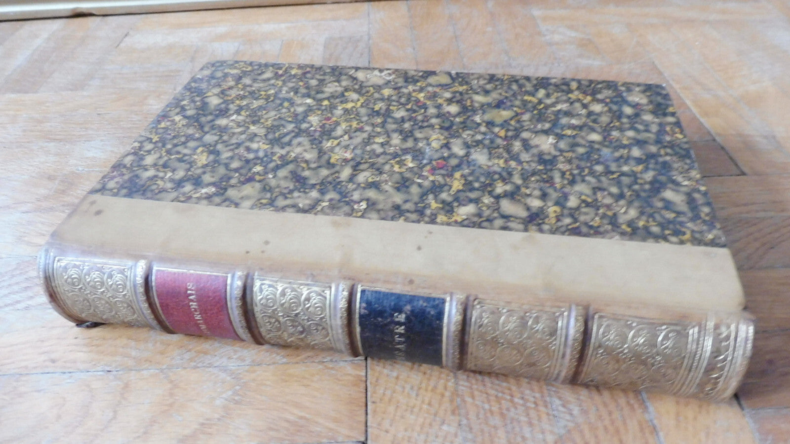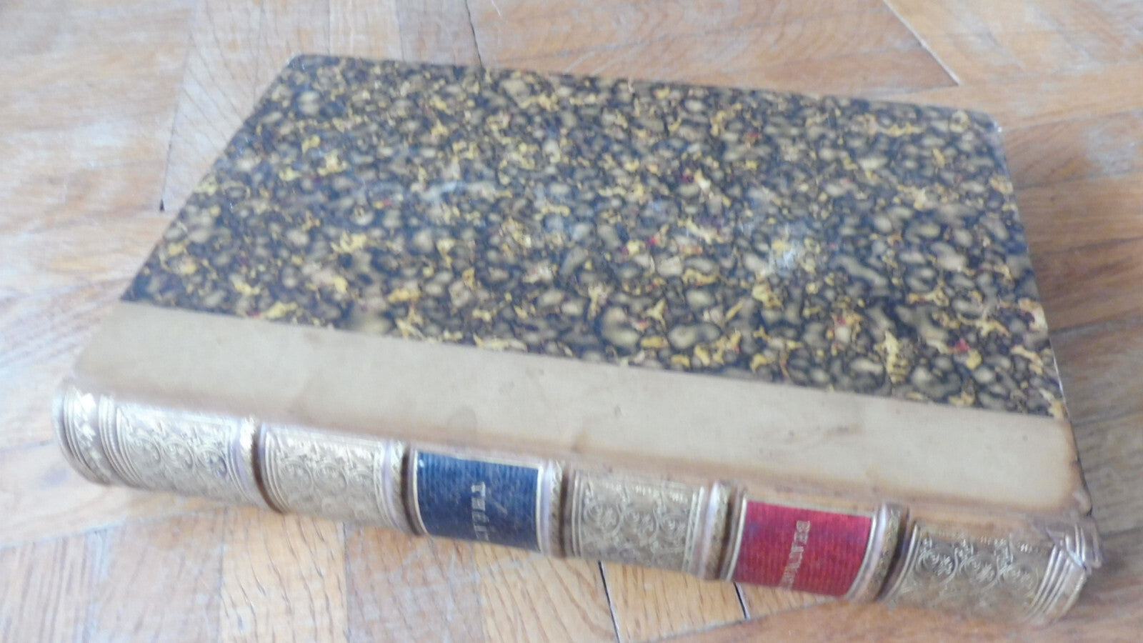 Demi cuir à 5 nerfs et pièces de titre. Dos orné, bel état. Coiffe idem. Petite fente au mors supérieur gauche. Plats corrects, un peu frottés. Tranches passées. Intérieur frais.