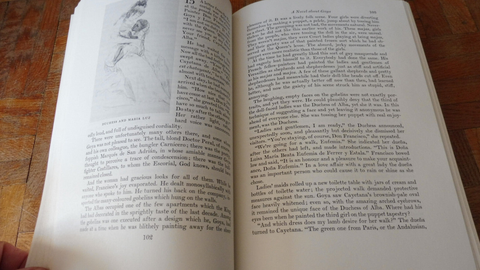 Cartonnage polychrome, état correct, menus frottements. Tranches et intérieur assez frais. En coffret carton, état correct. Illustrations par Goya.