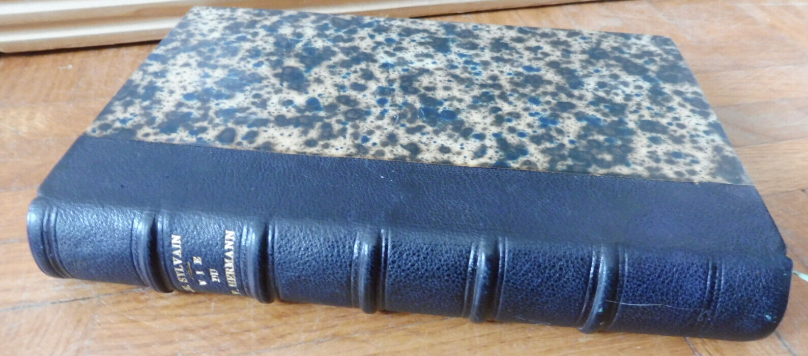 Demi cuir à 5 nerfs. Dos, coiffe, mors et plats en bel état. Tranches un peu passées. Intérieur frais. Frontispice.