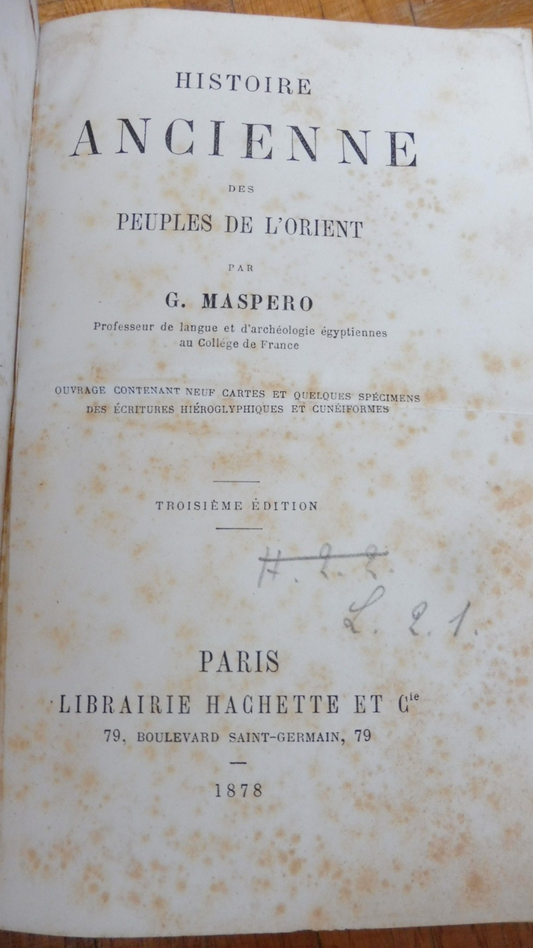 Histoire Ancienne des peuples de l'Orient (G. Maspero) 1878