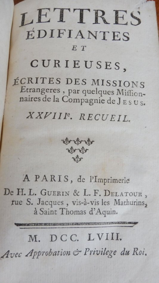 Lettres édifiantes et curieuses (Patouillet) 1758 CHINE PERSE DAMAS JESUITES
