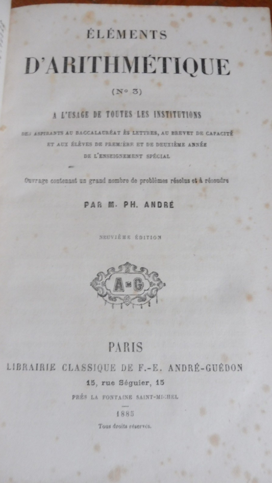 Eléments d'arithmétique (Ph. André) 1885